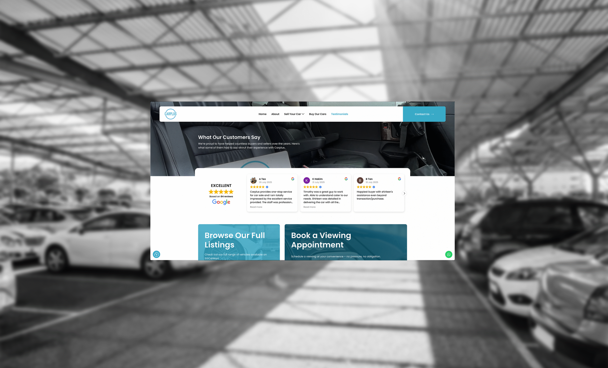We developed a custom car listing system that enables the client to easily manage their inventory, complete with detailed specifications, pricing, and image galleries. The design reflects trust, clarity, and professionalism, helping CarPlus build credibility in Singapore’s competitive automotive market. The result is a responsive, SEO-ready website that combines performance with style.